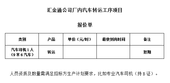 beat365公司厂内汽车转运工序项目公开招标公告